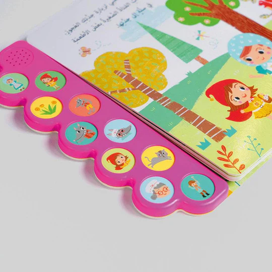 استمعْ إلى حكايةِ ذاتِ القُبَّعةِ الحمراءِ، الفتاةِ الصَّغيرةِ الَّتي ذهبتْ لزيارةِ جدَّتِها. حاولَ الذِّئبُ افتراسَها، لكنَّها نجتْ في النِّهايةِ. استمتعْ بالتَّفاعلِ معَ الأزرارِ وبالاستماعِ إلى تفاصيلِ القِصَّةِ