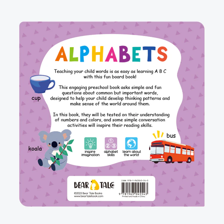 This alphabet board book is perfect for toddlers to open the door to the alphabet world! Open this book, your little ones will find cute little tabs along the top and sides, beautiful illustrations in bright colors, and easy-to-grip thick board paper, all of which make for a wonderful reading experience! Toddlers can find their favorite letters by following the little tabs. Accompanied by the parents, children can read and learn more than 130 words aloud, developing early oral language, listening, and observation skills.