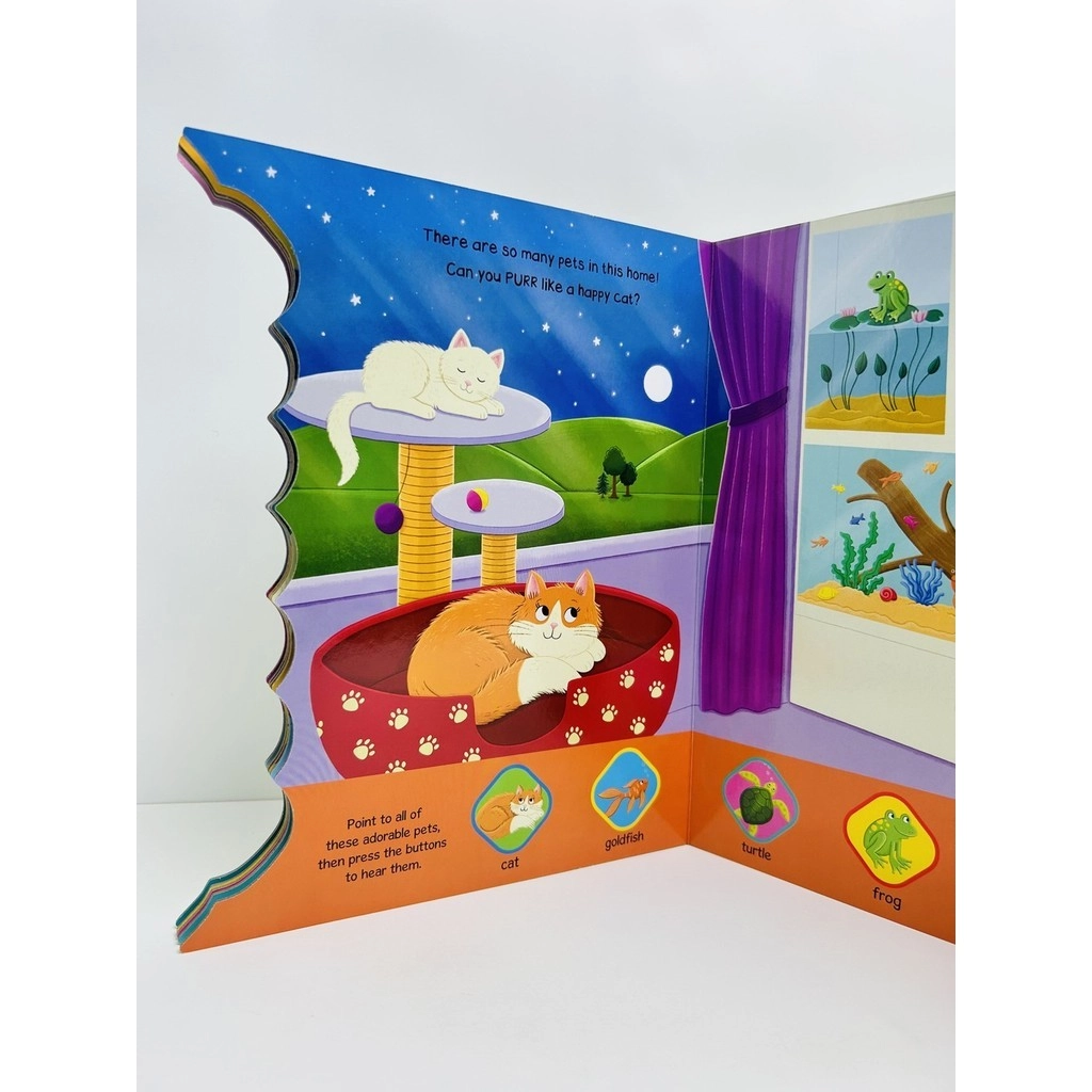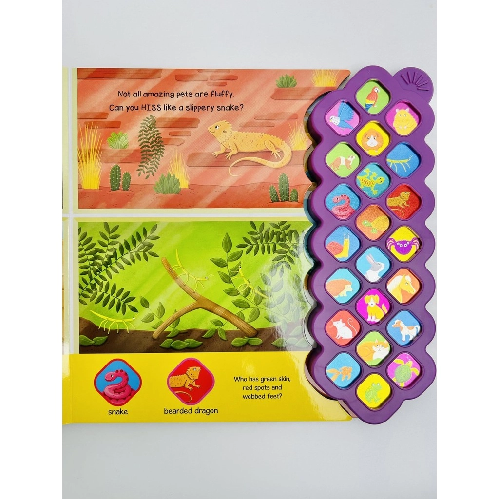 Meet lots of cute pets from BARKING dogs to SQUAWKING parrots and press each shiny button to learn all about the sounds they make.